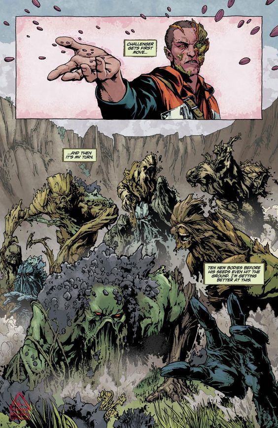 História: Alec Holland era um cientista que, após um acidente com um experimento, foi transformado em uma criatura elemental conhecida como o Monstro do Pântano. Ele possui uma conexão única com o mundo natural, sendo capaz de controlar plantas, regenerar seu corpo e se comunicar com a biosfera terrestre.